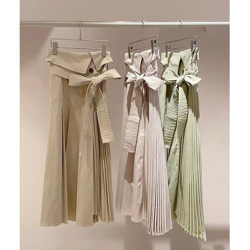 リボン プリーツ スプリング 春物 サマー 夏物 スカート スリム ソリッドカラー JPLS35537679840