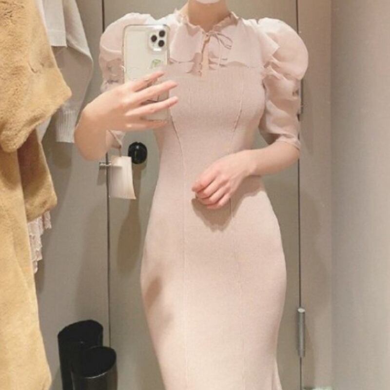 ロング 半袖 ハーフスリーブ スプリング 春物 Vネック スリム JPLS96682792462