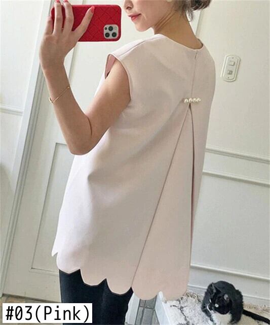 フリル ラッフル ノースリーブ Oネック パール 真珠 JPLS39902278433