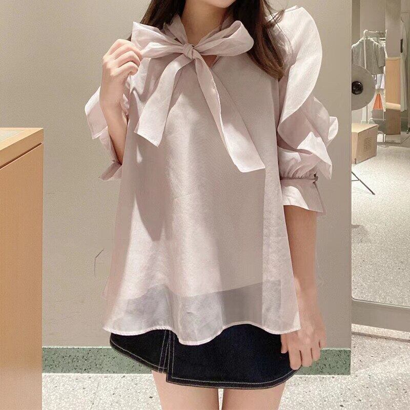 リボン レース ブラウス 大人ガーリー スウィート キュート カジュアル スプリング 春物 レースアップ JPLS88420898341