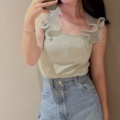 シャツ 大人ガーリー スウィート キュート カジュアル オータム 秋物 ノースリーブ スリム Tシャツ ソリッドカラー JPLS5187023773