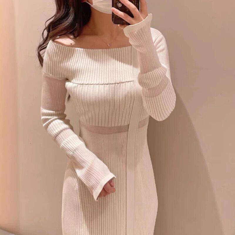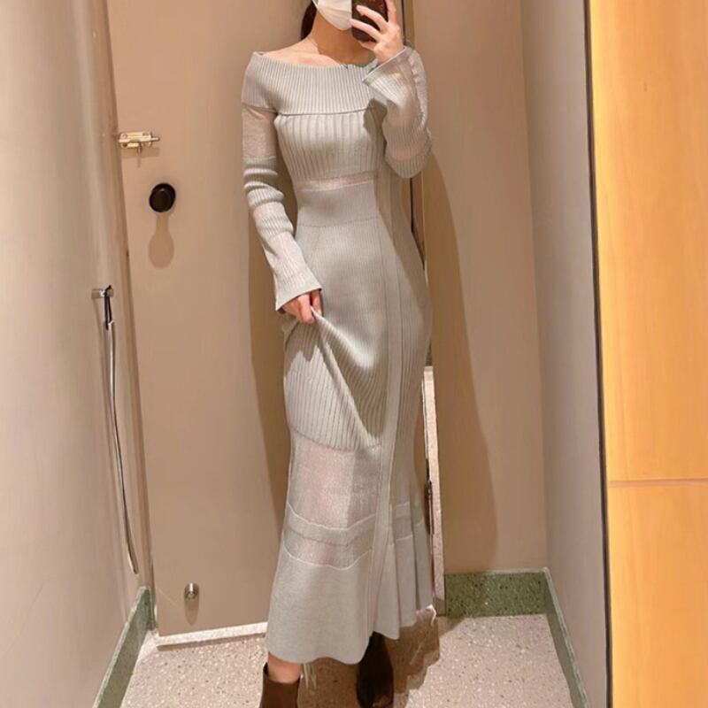 ロング スリム オフショルダー ソリッドカラー JPLS44477015156