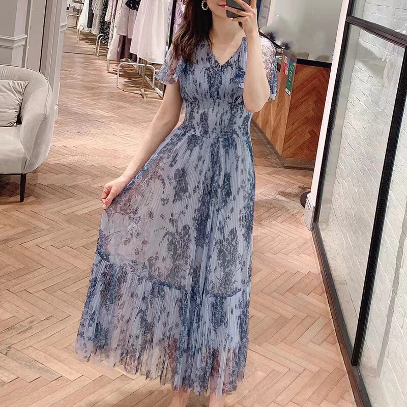 ロング シフォン 大人ガーリー スウィート キュート カジュアル サマー 夏物 Vネック Aライン スリム JPLS60234653845