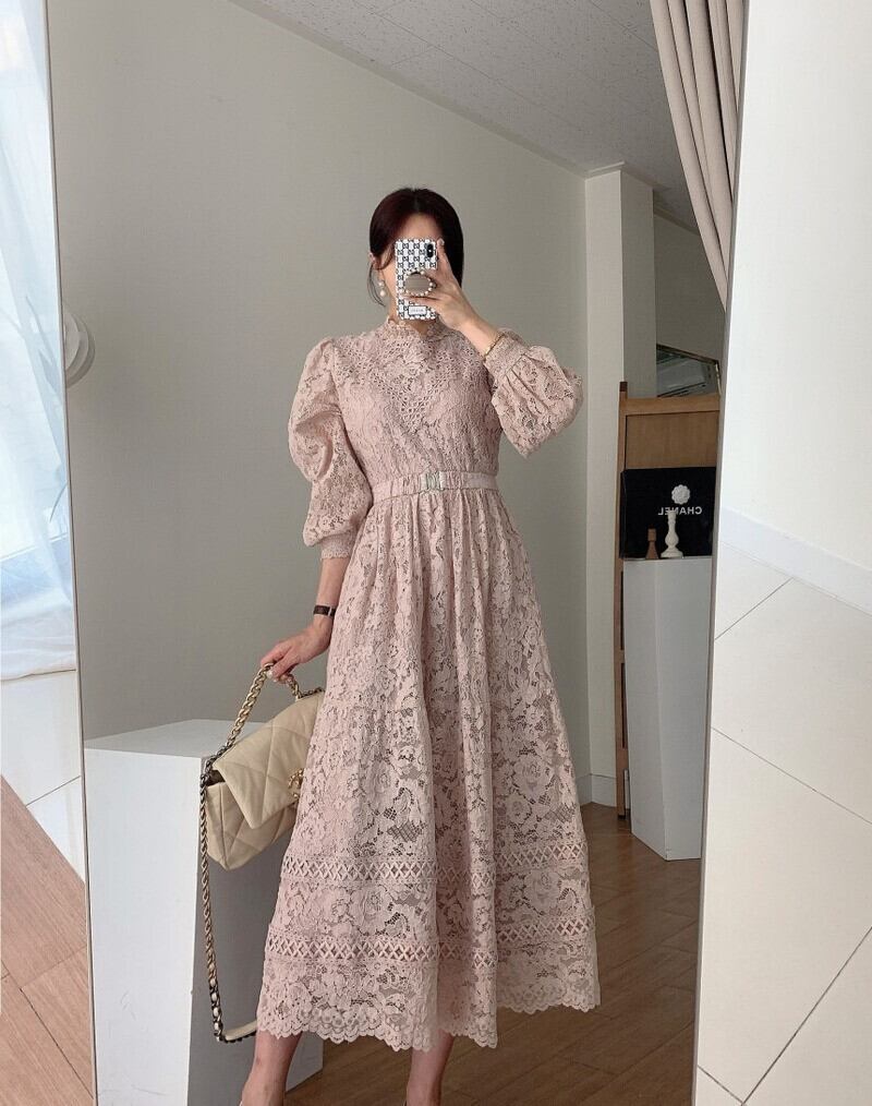 レース オータム 秋物 Oネック Aライン ビンテージ JPLS11636755428
