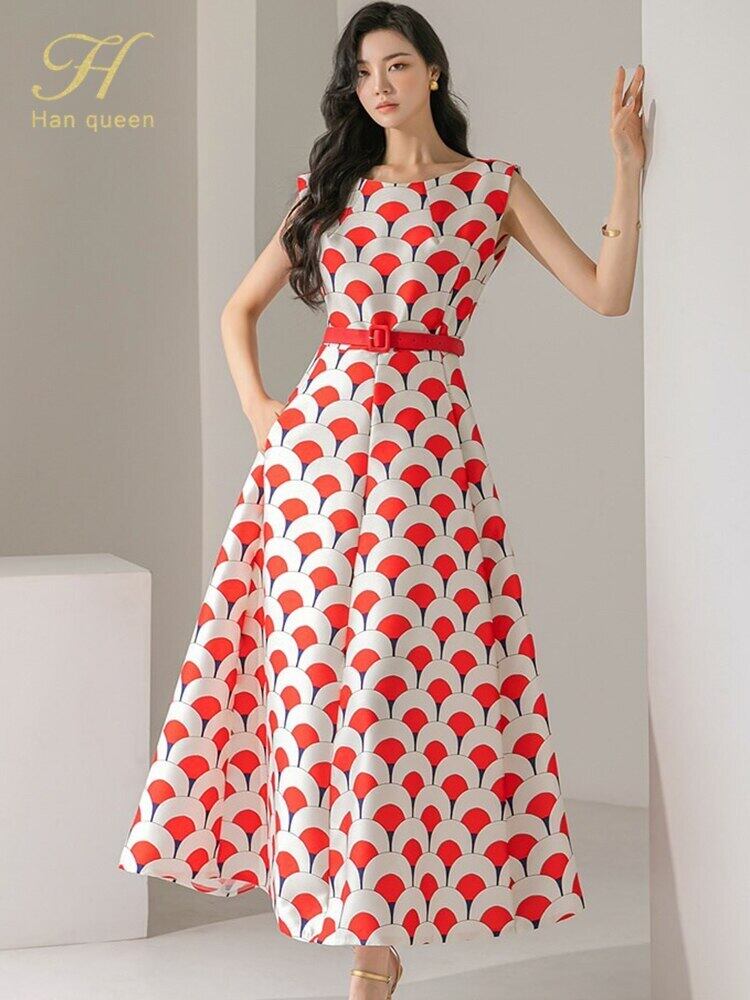 ロング サマー 夏物 ドレス Oネック Aライン 会社 学校 通勤や通学にも A-HHan42274876738