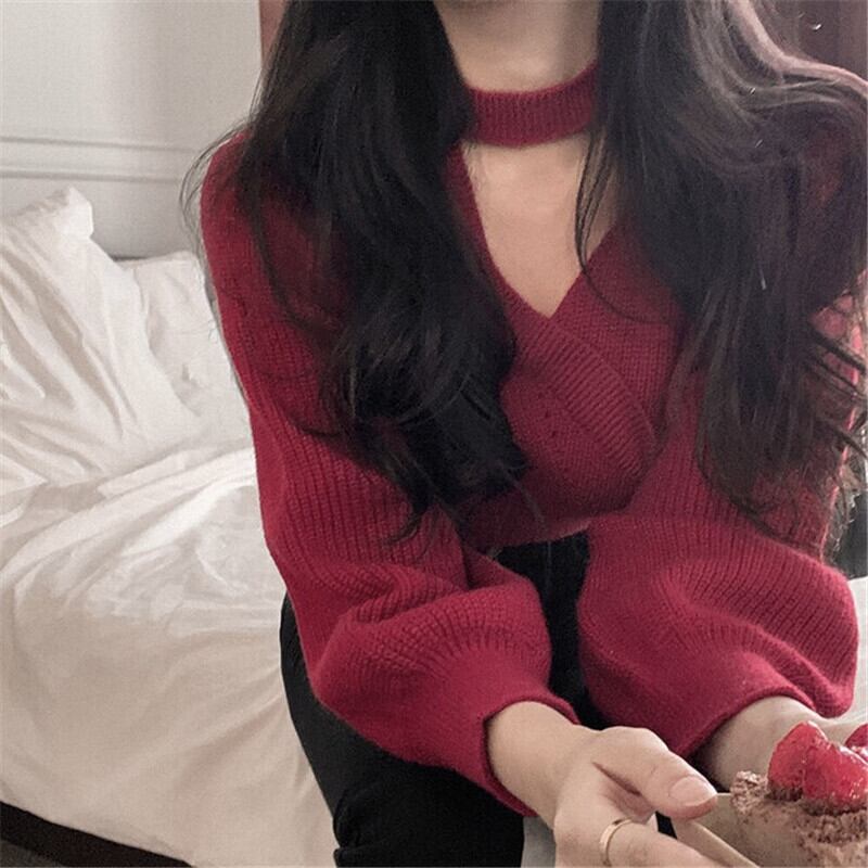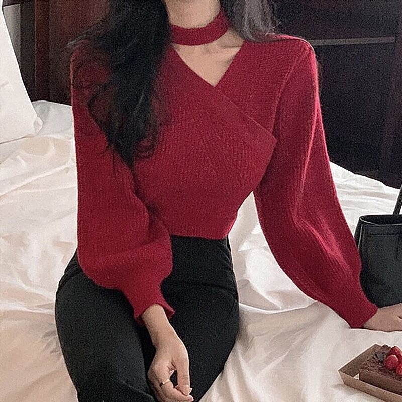 レッド ランタンスリーブ Vネック JPLS60497106520