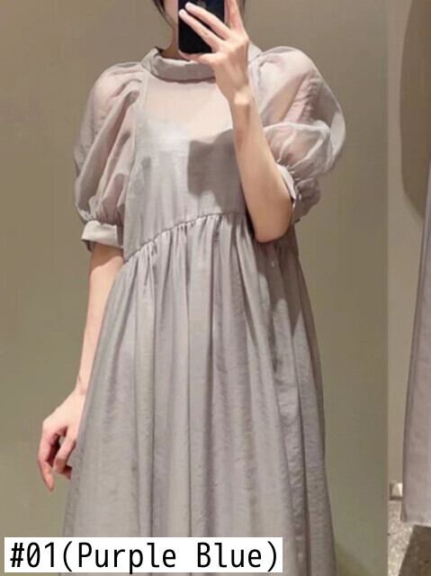 プリーツ サマー 夏物 ドレス ソリッドカラー JPLS18131965714