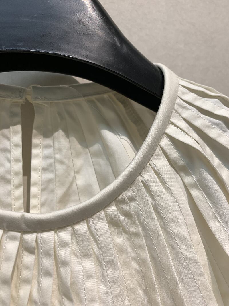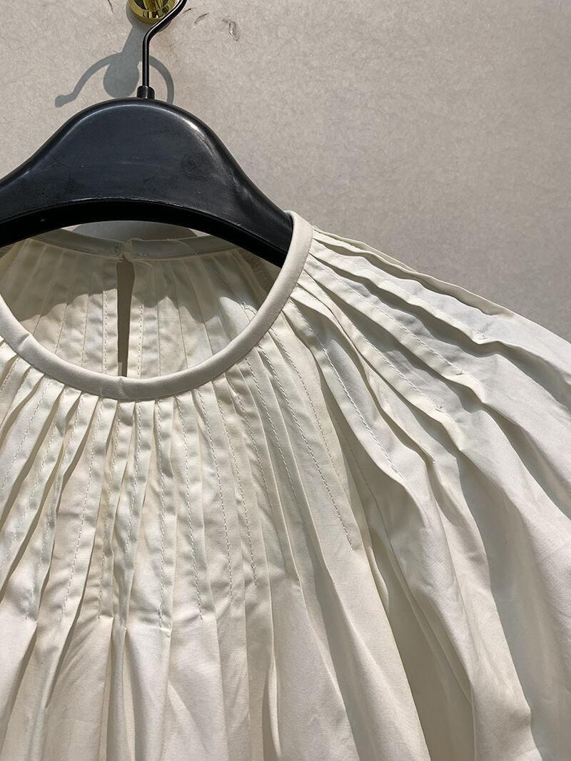 ショート 半袖 ハーフスリーブ シャツ ブラウス プリーツ Oネック Aライン スリム JPLS42372095317
