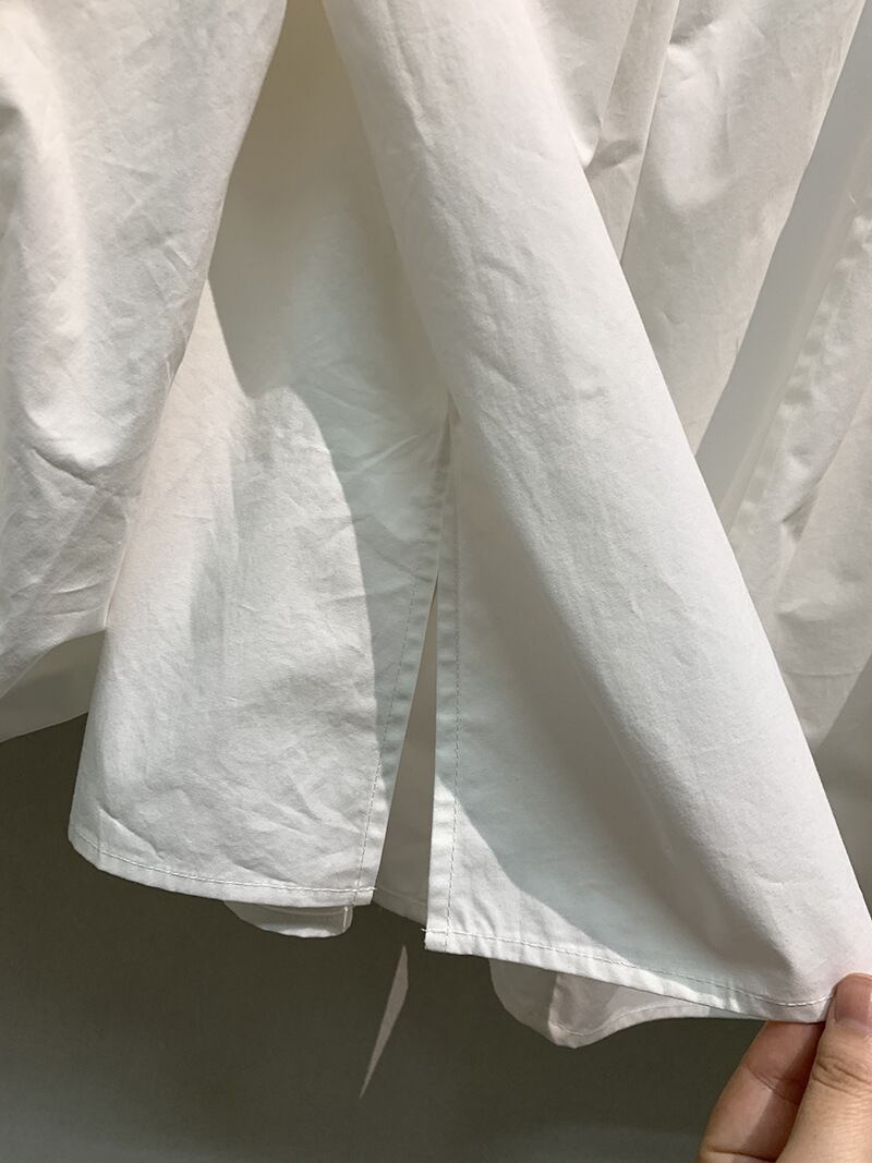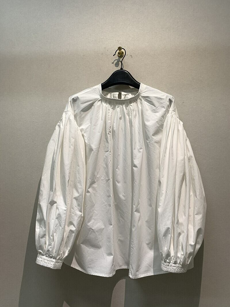 ランタンスリーブ シャツ ブラウス プリーツ スプリング 春物 Oネック Aライン ソリッドカラー JPLS8159132283
