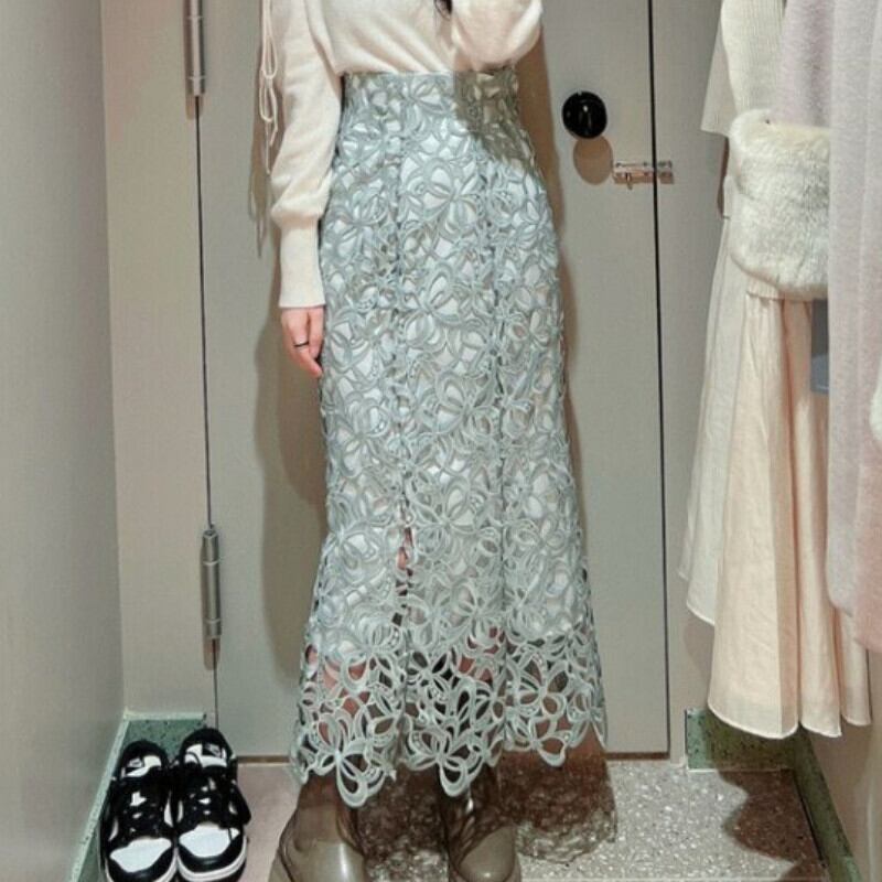 ロング レース オータム 秋物 スリムヒップ スカート スリム ソリッドカラー フラワーデザイン JPLS35704635480