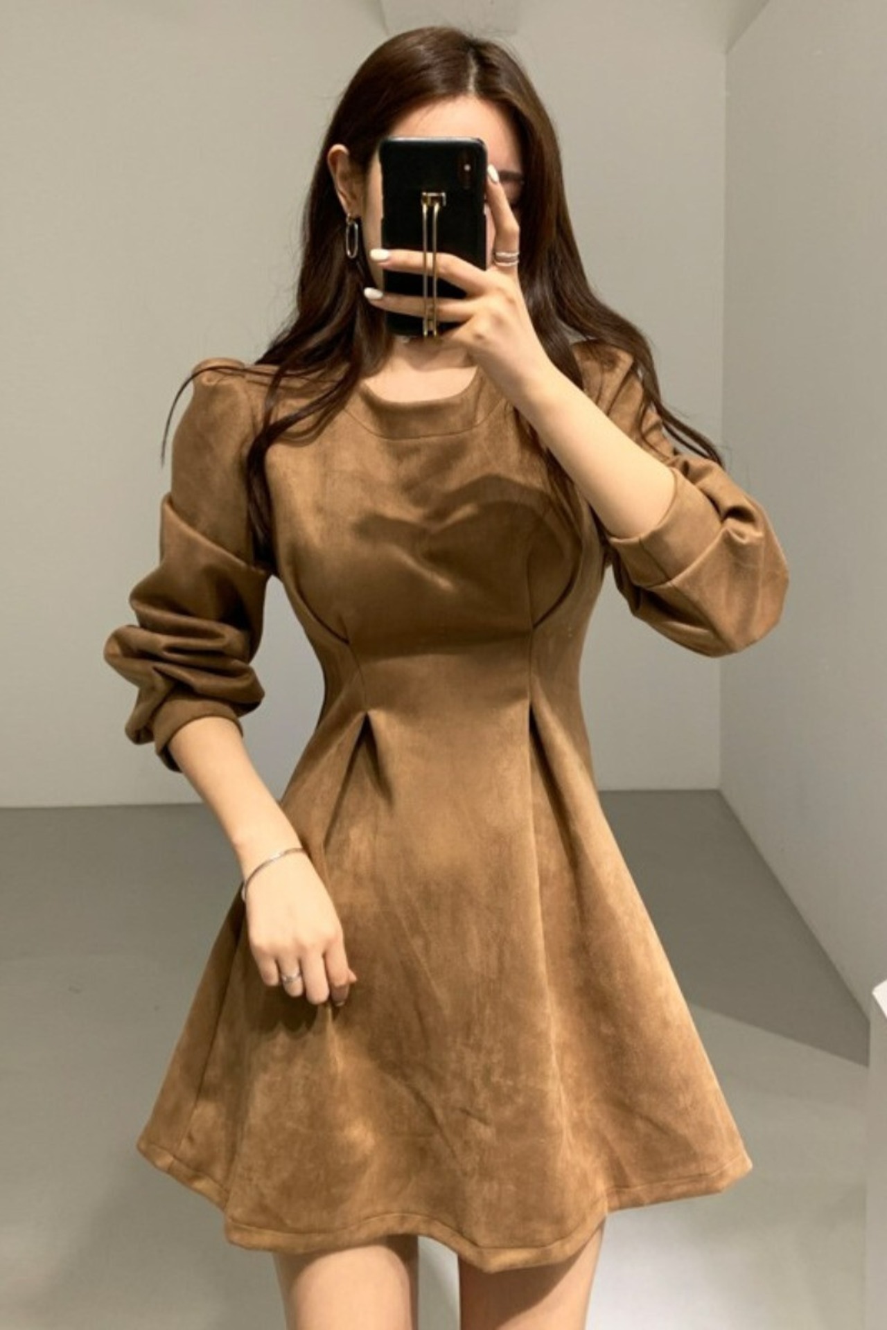 ショート オータム 秋物 ドレス Oネック スリム ビンテージ JPLS33580424531