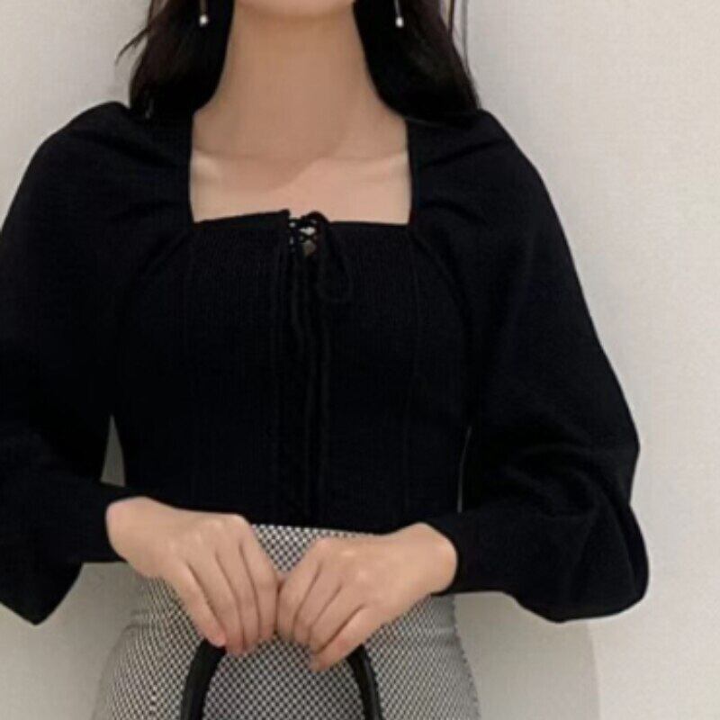 ランタンスリーブ レース 大人ガーリー スウィート キュート カジュアル スプリング 春物 スリム レースアップ スクウェア JPLS75833021705