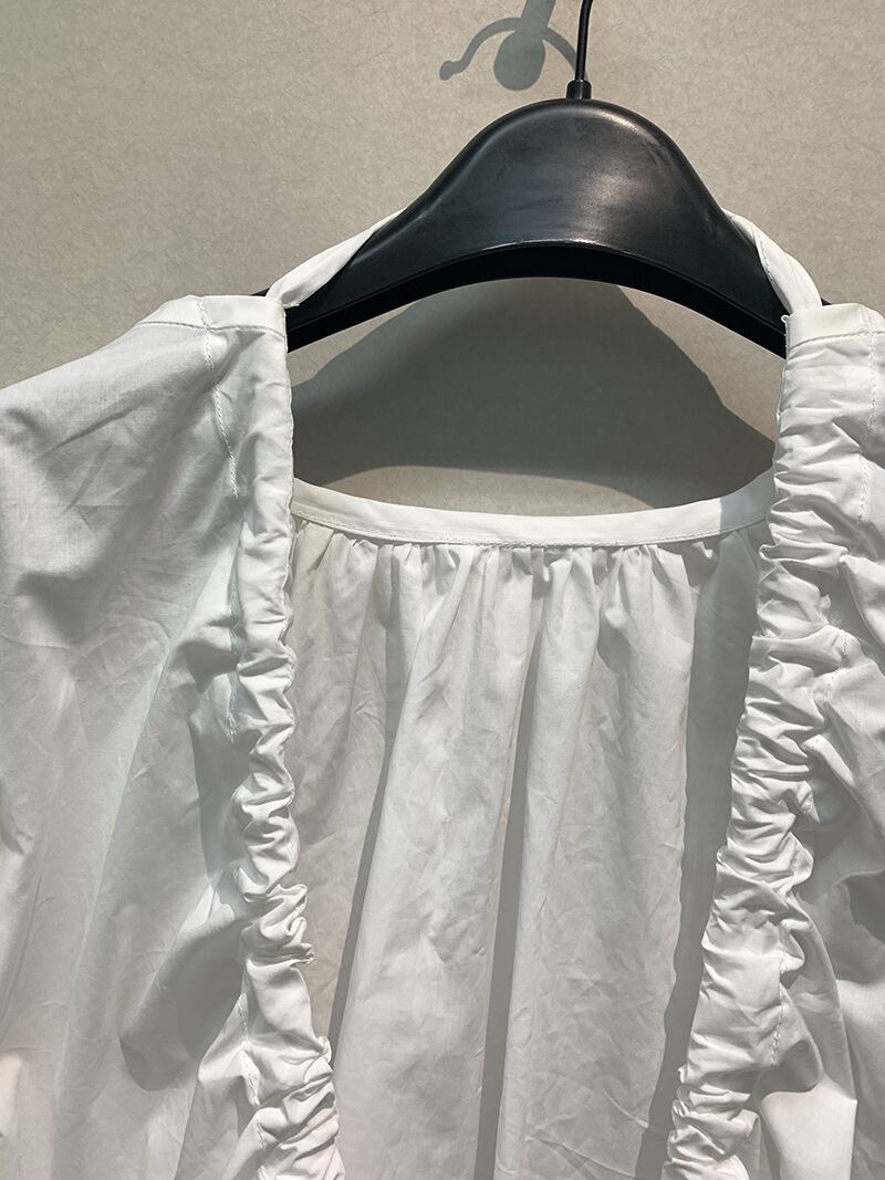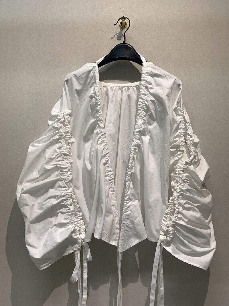 ホワイト レース シャツ ブラウス プリーツ Vネック レースアップ JPLS92717663501