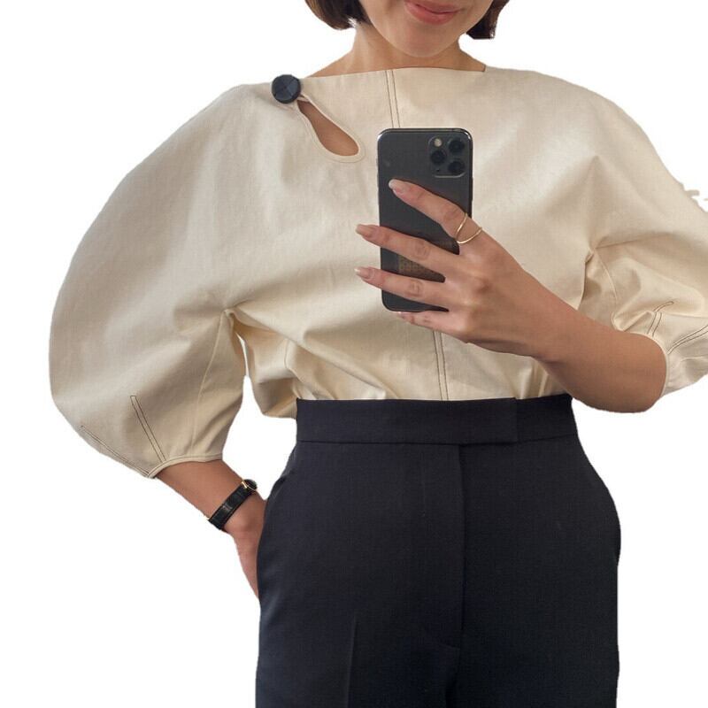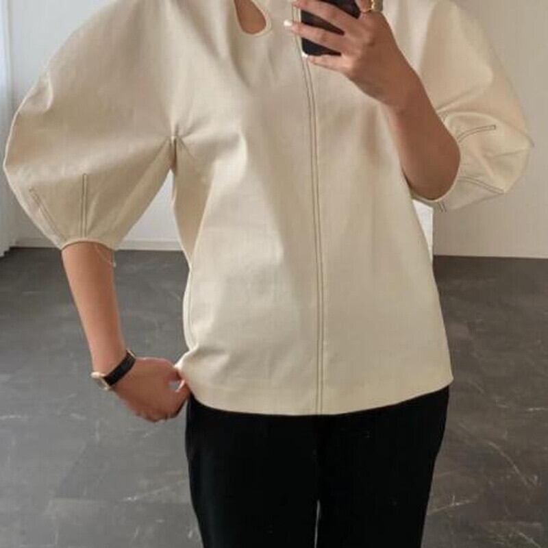 ショート ランタンスリーブ ブラウス サマー 夏物 ソリッドカラー JPLS33003192383