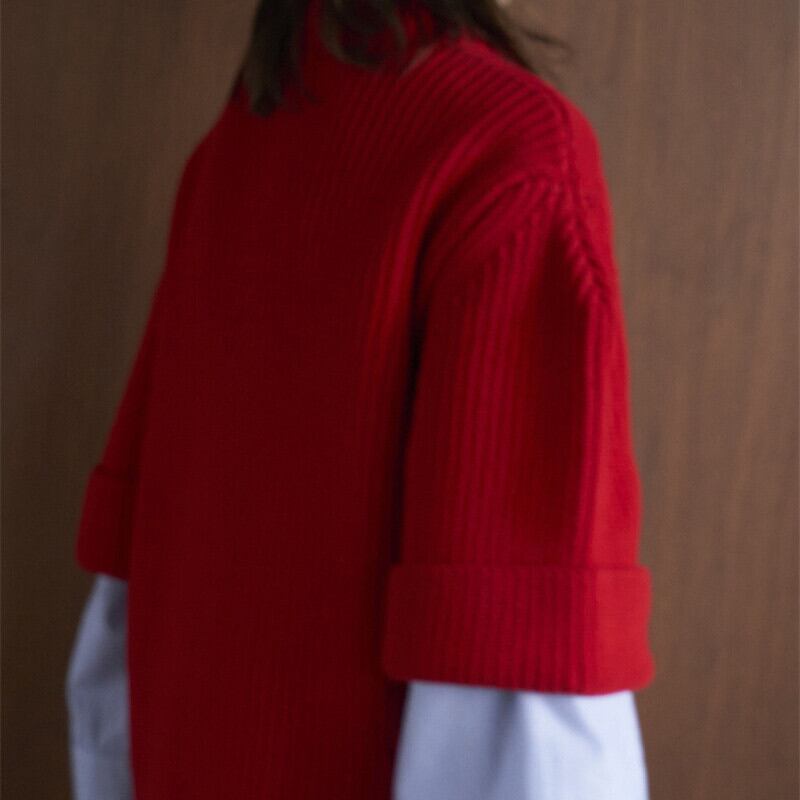 ショート レッド 半袖 ハーフスリーブ ウィンター 冬物 Oネック ビンテージ JPLS57719694086