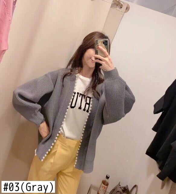 ランタンスリーブ カーディガン オータム 秋物 ウィンター 冬物 Vネック パール 真珠 JPLS84730041562