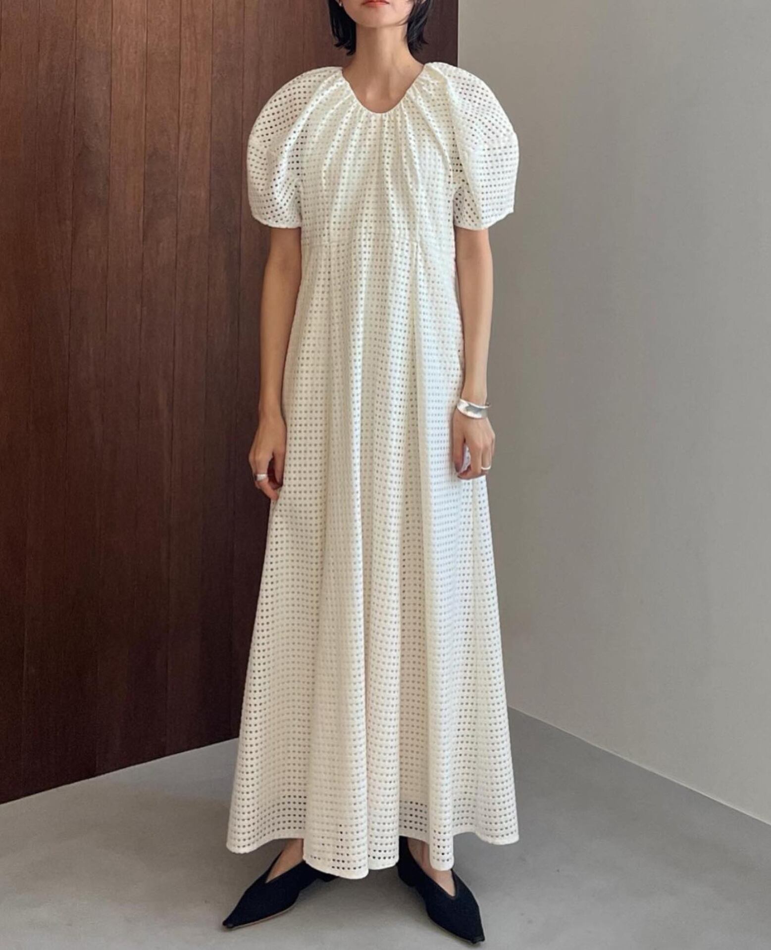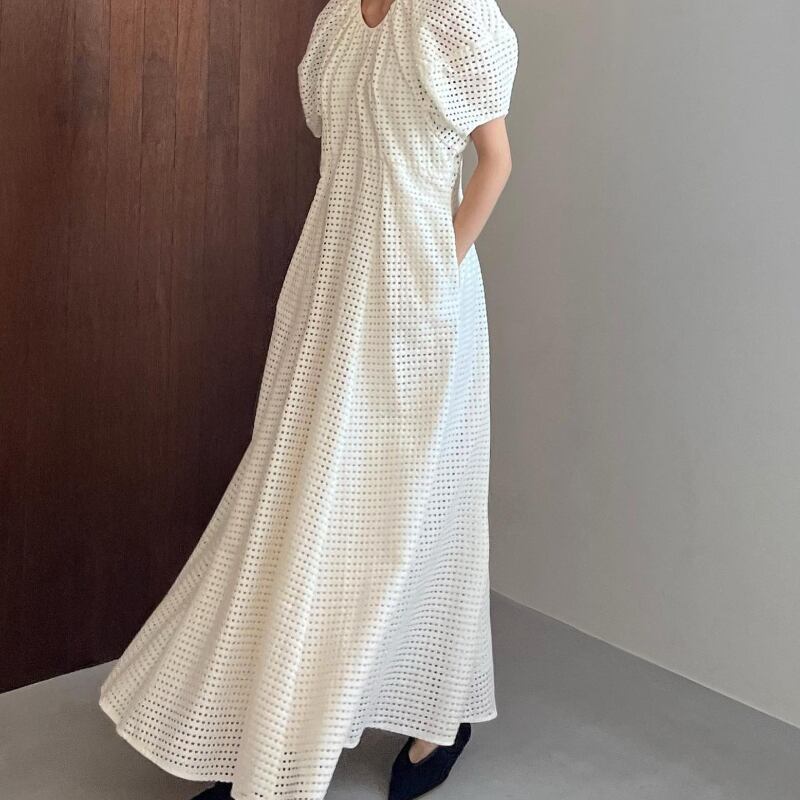 ロング ホワイト スプリング 春物 Oネック ソリッドカラー ビンテージ JPLS98165339321
