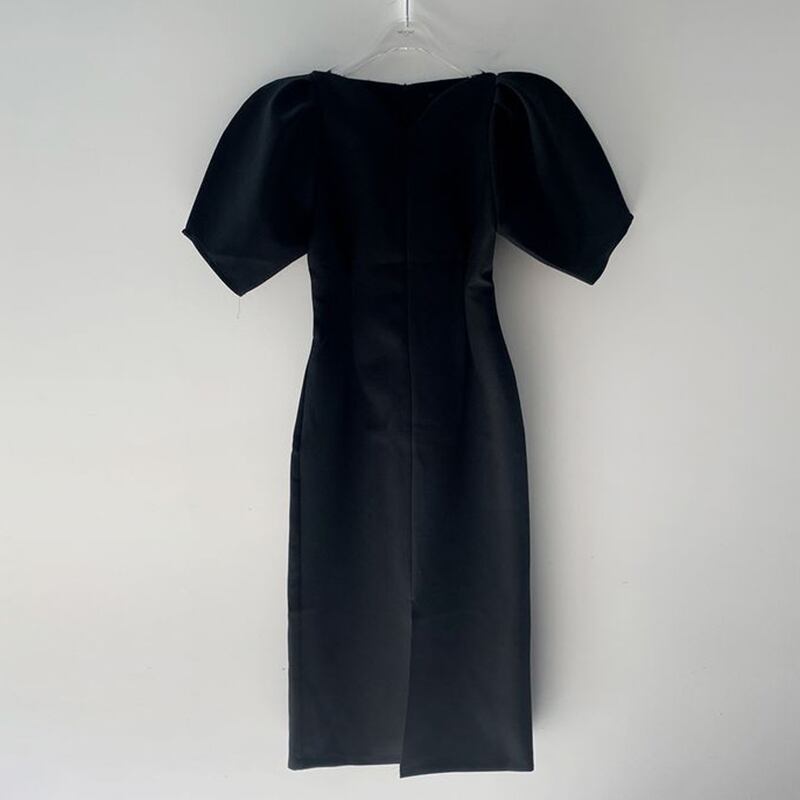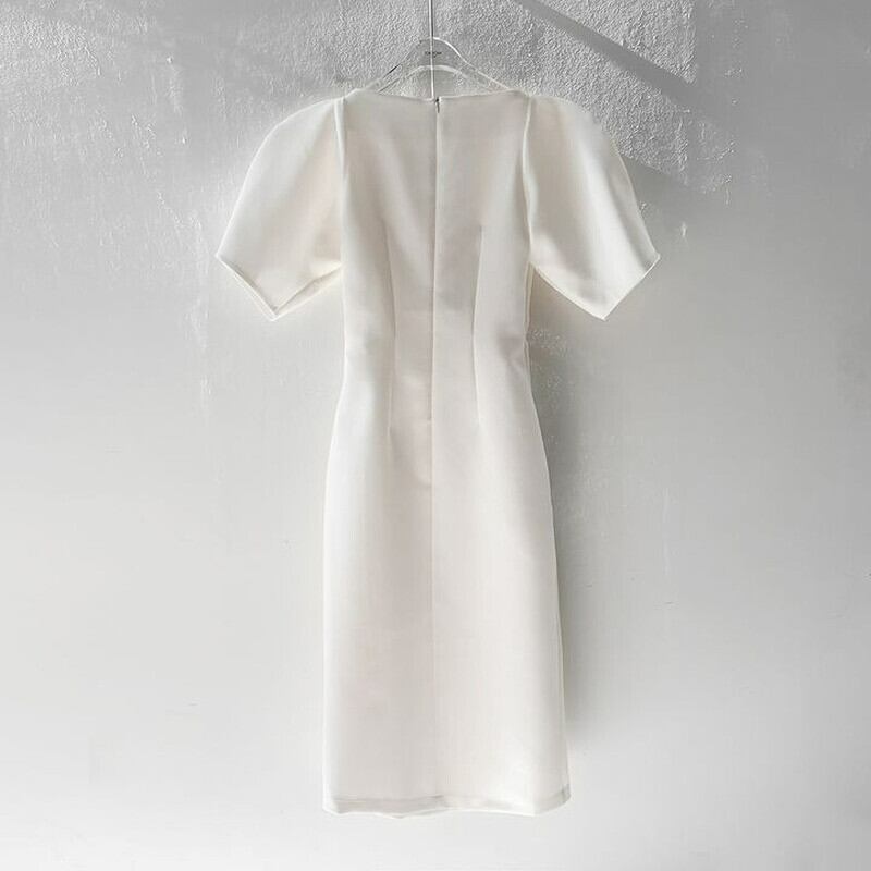 ショート プリーツ ドレス Vネック Aライン ソリッドカラー JPLS5521988572