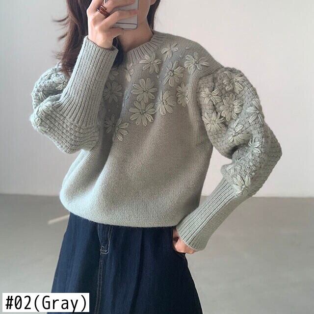 ランタンスリーブ レトロ 刺繍 花柄 Oネック JPLS21606582275
