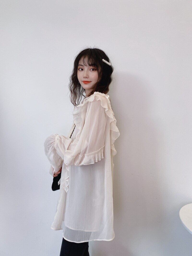 ロング 長袖 シャツ ブラウス 大人ガーリー スウィート キュート カジュアル オータム 秋物 Vネック マルチレイヤー ソリッドカラー JPLS52232971760