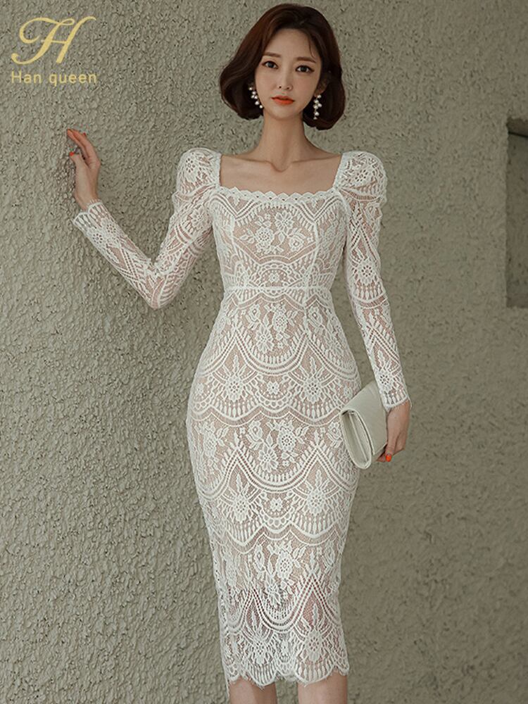 ホワイト ブラック レトロ レース ドレス 会社 学校 通勤や通学にも A-HHan66064301793