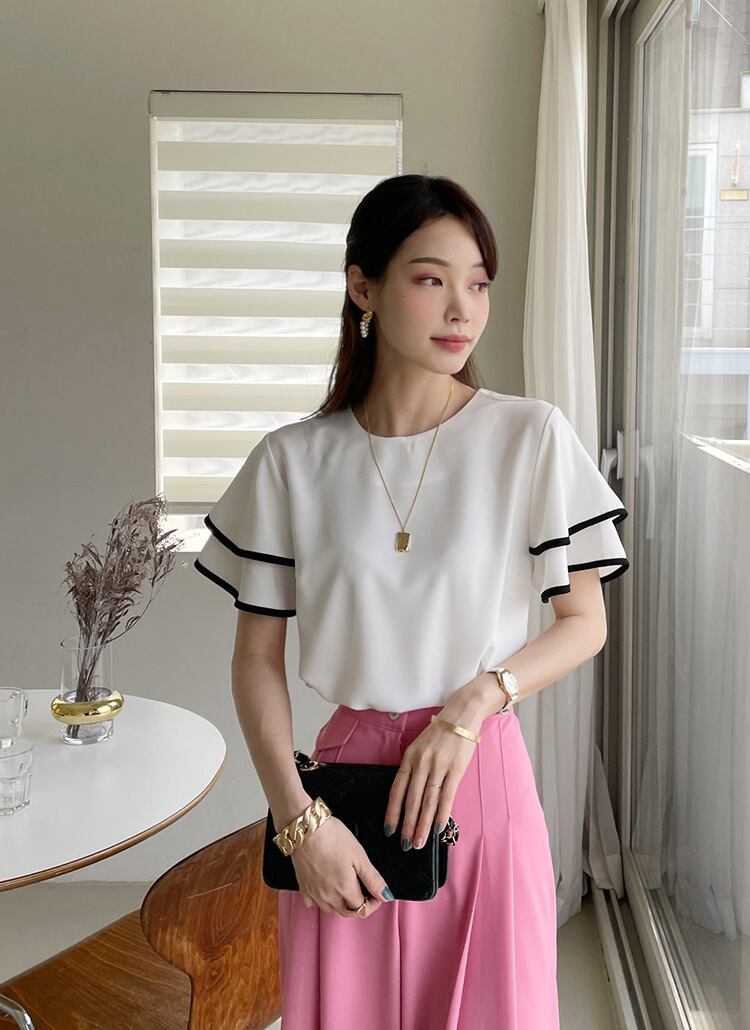 シャツ ブラウス Oネック ストライプ ソリッドカラー 会社 学校 通勤や通学にも JPLS6522980498