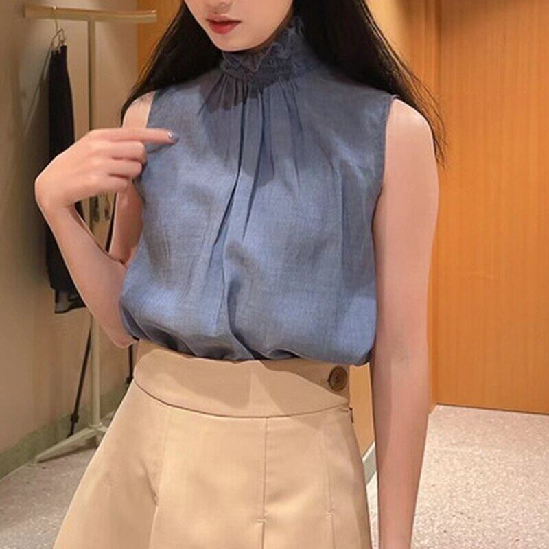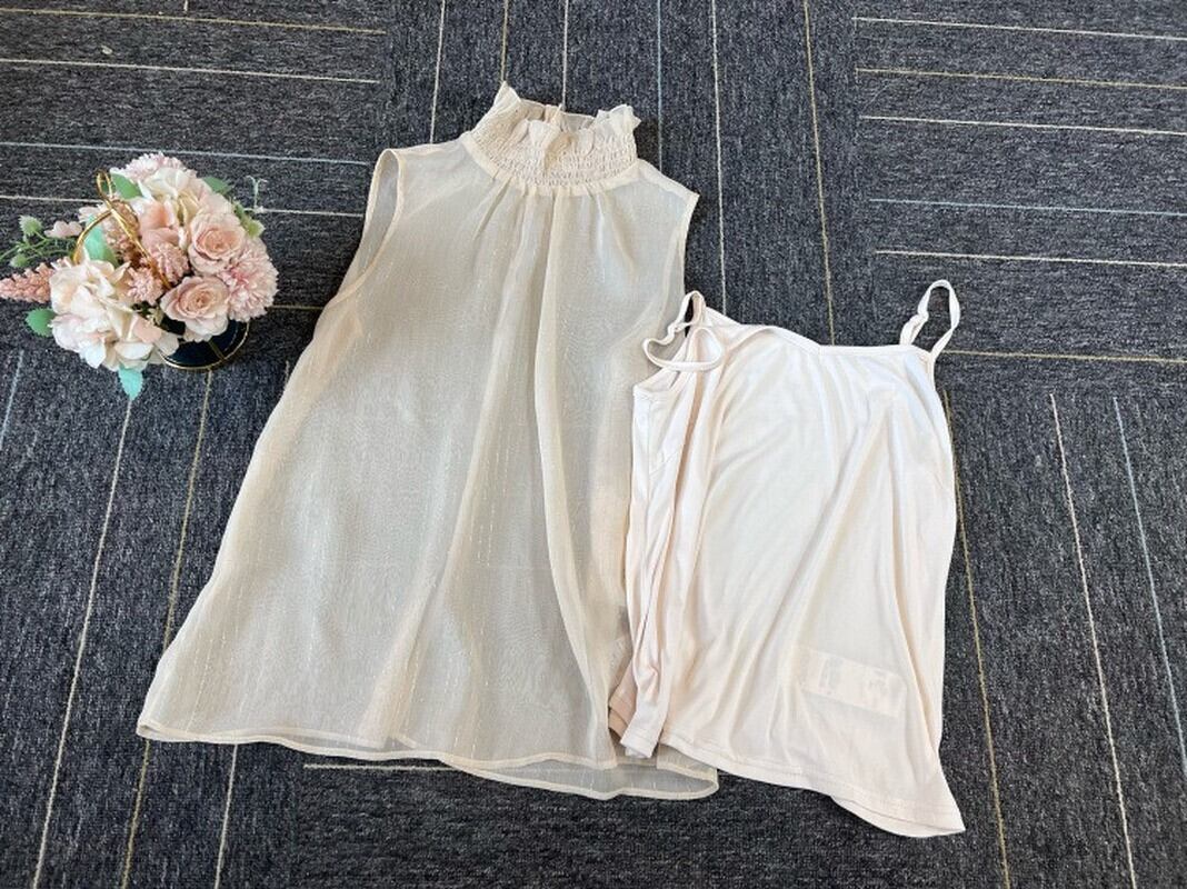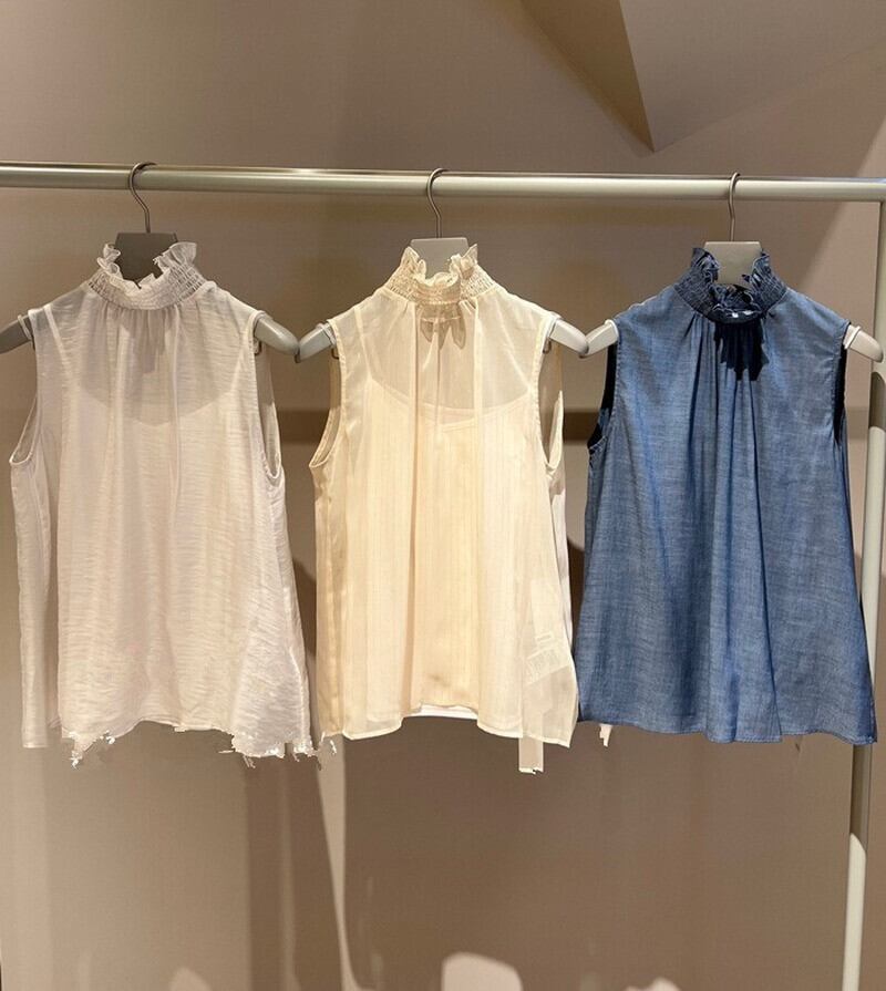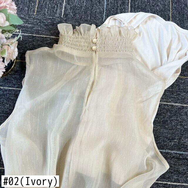 シフォン ブラウス プリーツ オータム 秋物 ノースリーブ ソリッドカラー JPLS68462724361