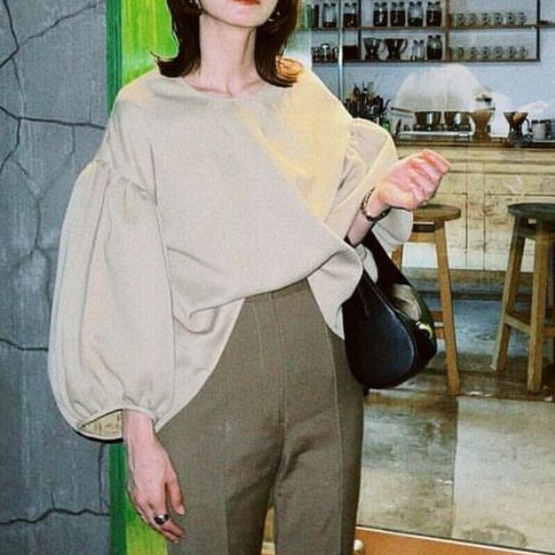 シャツ ブラウス オータム 秋物 Oネック スリム ソリッドカラー JPLS16326022204