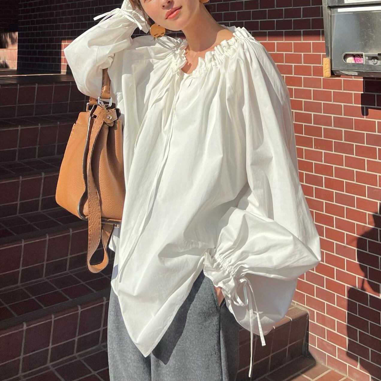 ロング 長袖 シャツ ブラウス スプリング 春物 Oネック ソリッドカラー JPLS54283195722