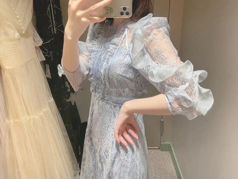 レース 刺繍 大人ガーリー スウィート キュート カジュアル スプリング 春物 サマー 夏物 Oネック スリム JPLS49398487341