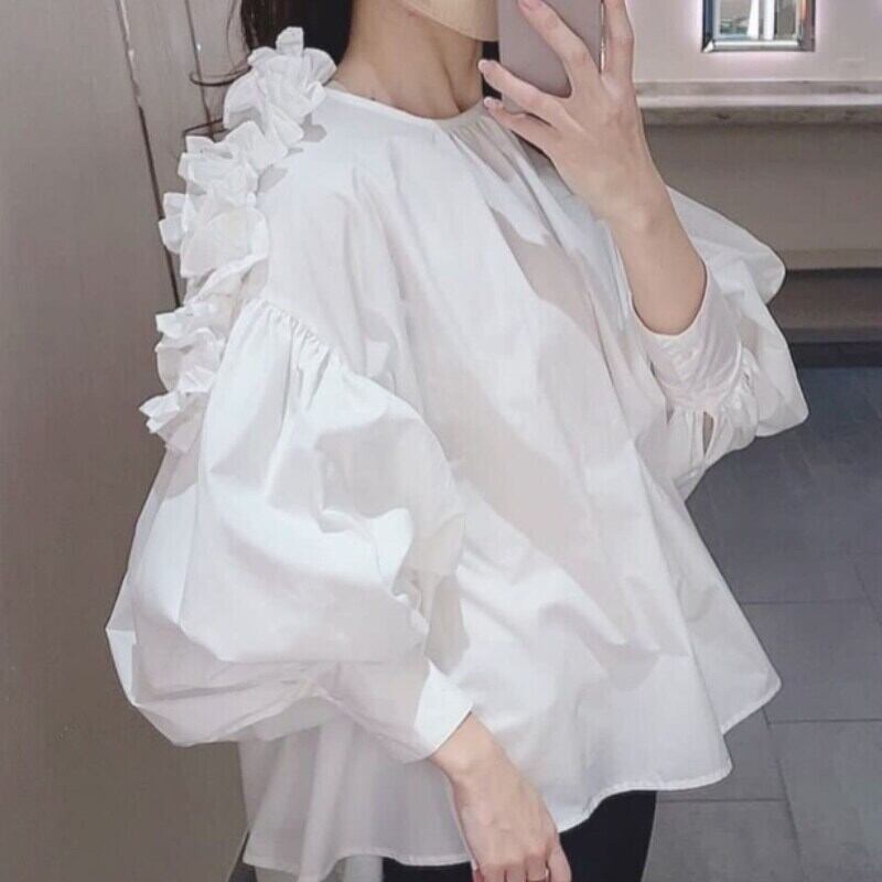 ランタンスリーブ レース ブラウス プリーツ スプリング 春物 JPLS35367434674