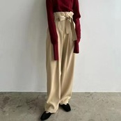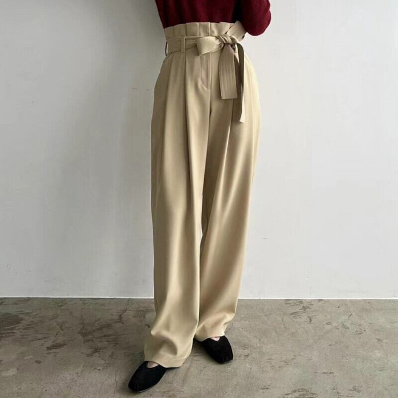 プリーツ スリム ワイドレッグ ワイドパンツ ソリッドカラー ビンテージ JPLS50991579024