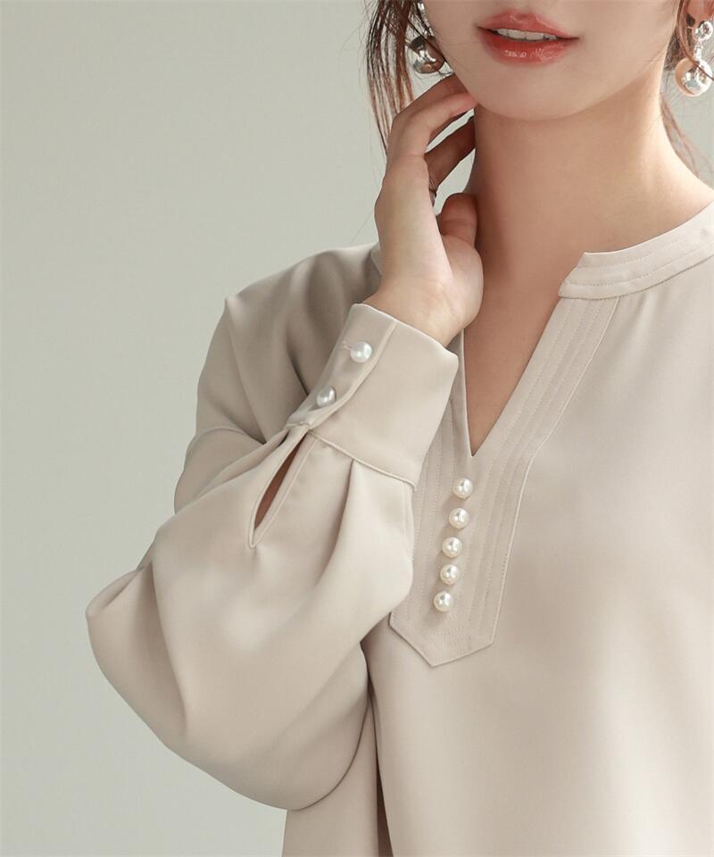 ロング シャツ ブラウス スプリング 春物 Vネック ソリッドカラー JPLS73853939667