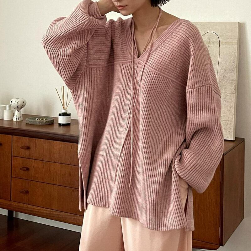 ピンク レース オータム 秋物 ウィンター 冬物 Vネック レースアップ JPLS30829543541