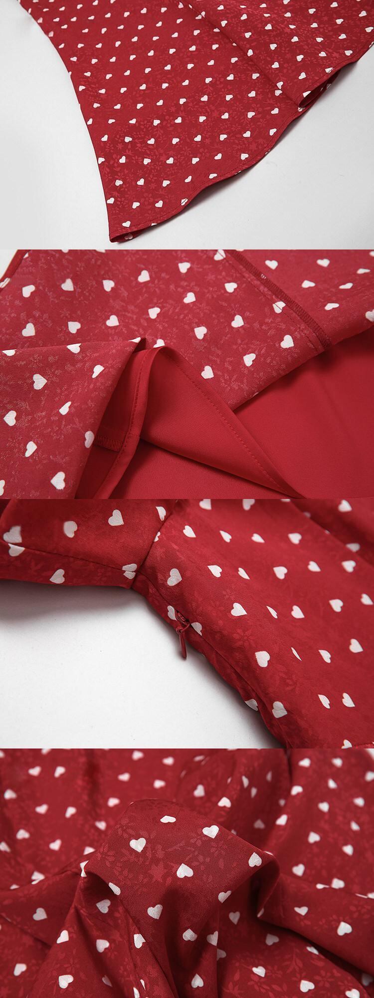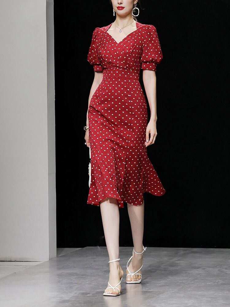 レッド ランタンスリーブ レトロ カジュアル サマー 夏物 ドレス Vネック A-HHan8199259879