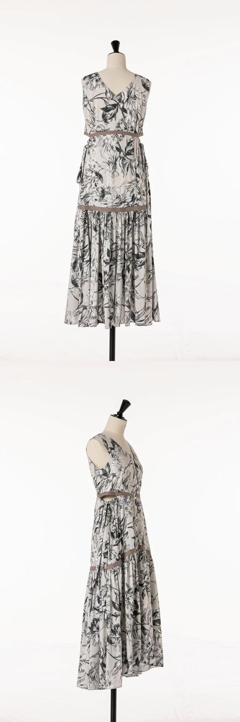 レース サマー 夏物 ノースリーブ Vネック レースアップ フラワーデザイン JPLS87321678073