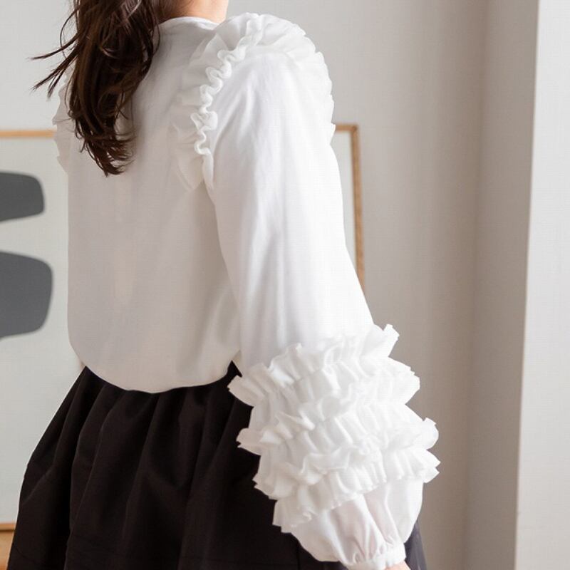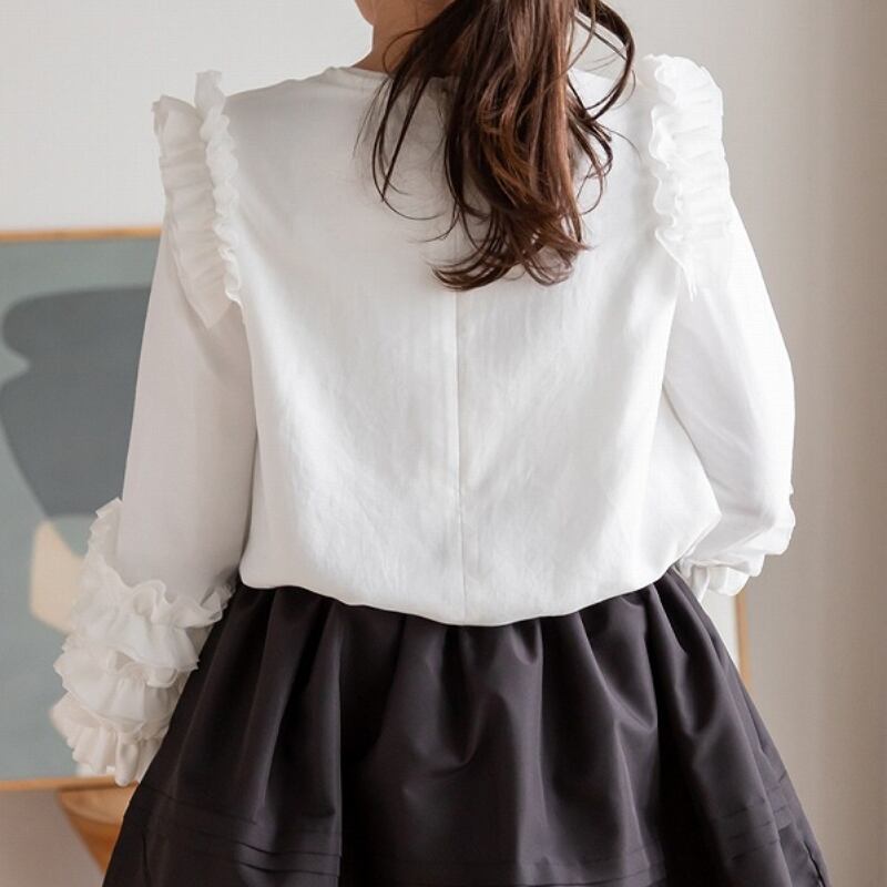 ランタンスリーブ シャツ ブラウス スプリング 春物 Oネック ソリッドカラー JPLS67061892340