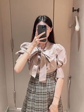 リボン レース ブラウス オータム 秋物 レースアップ ソリッドカラー JPLS73533119315
