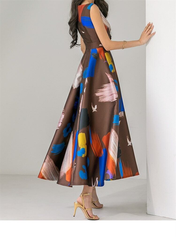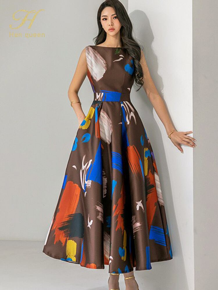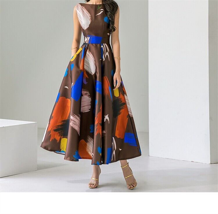 ロング レトロ サマー 夏物 ドレス ノースリーブ Oネック スリム A-HHan56095981246