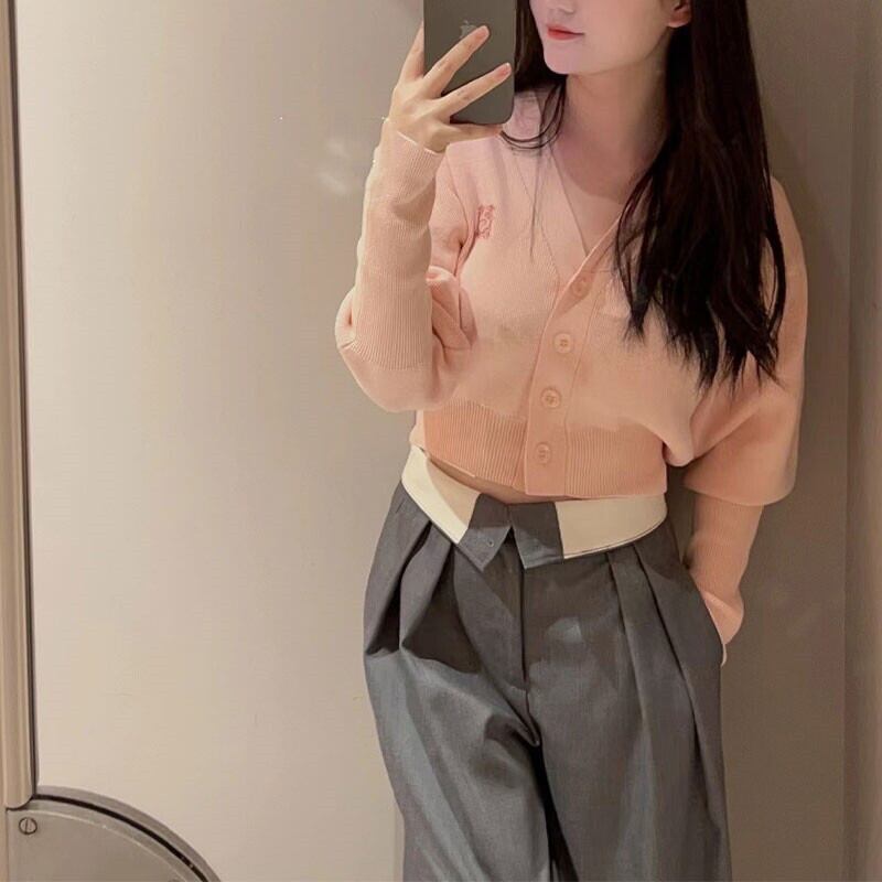ピンク 刺繍 カーディガン スプリング 春物 Vネック ソリッドカラー JPLS14250556834