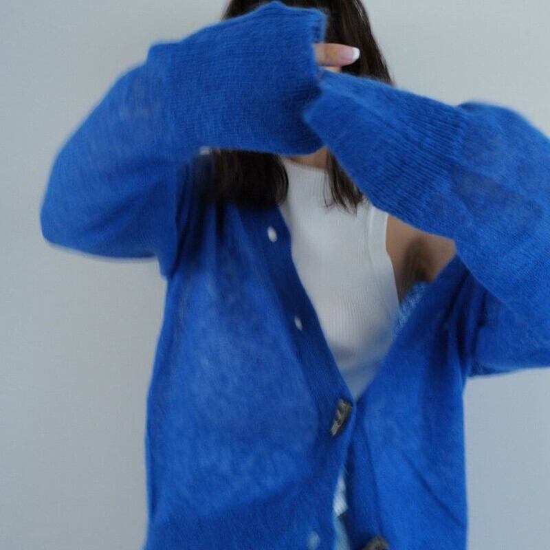 ロング ブルー 長袖 カーディガン Vネック JPLS20326491875