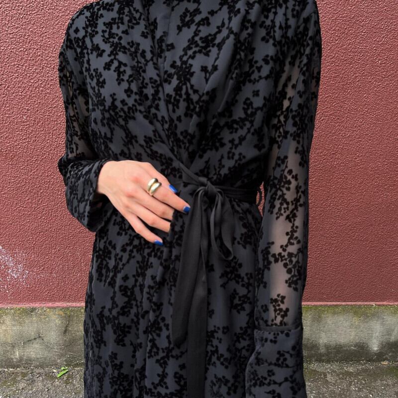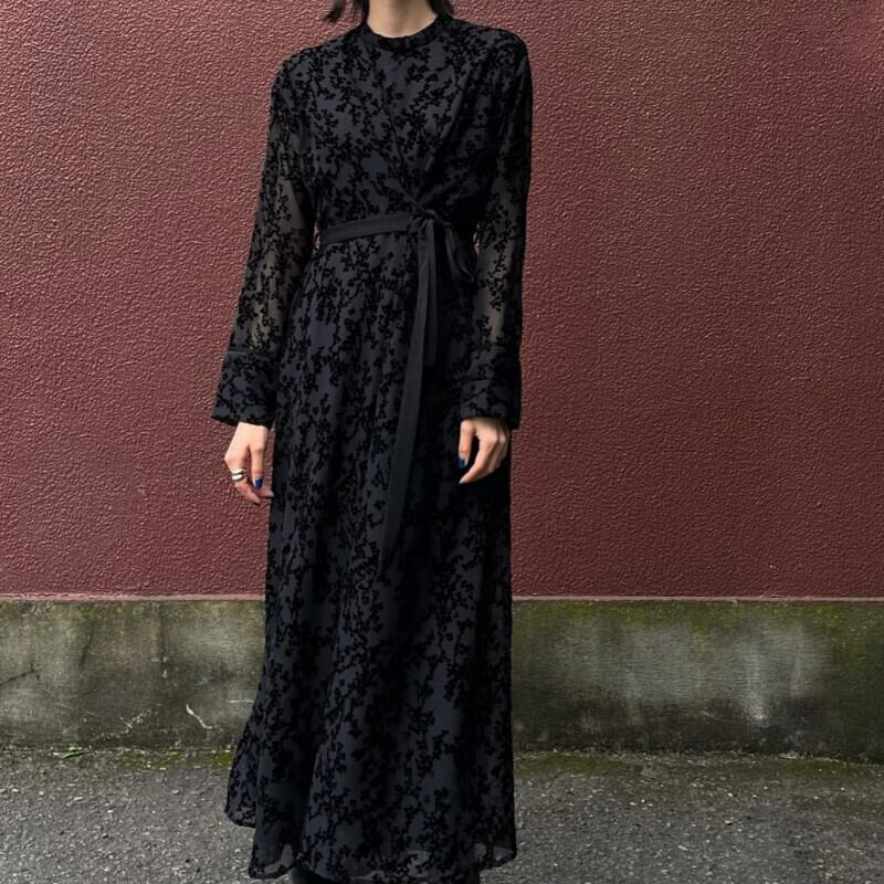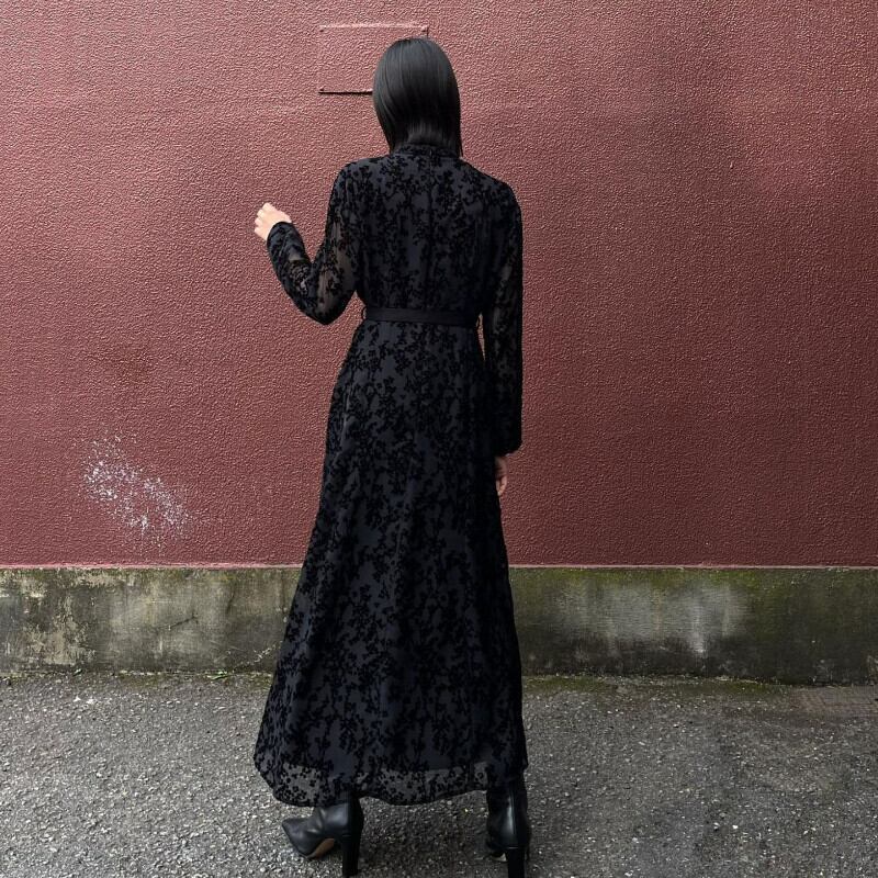 ロング ブラック プリント ドレス スリム ビンテージ JPLS63303840718