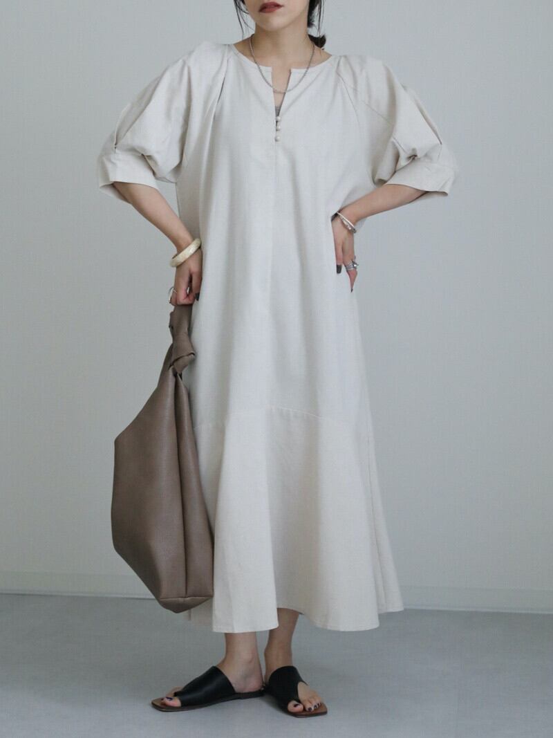ロング サマー 夏物 Vネック パール 真珠 ソリッドカラー JPLS22393241703