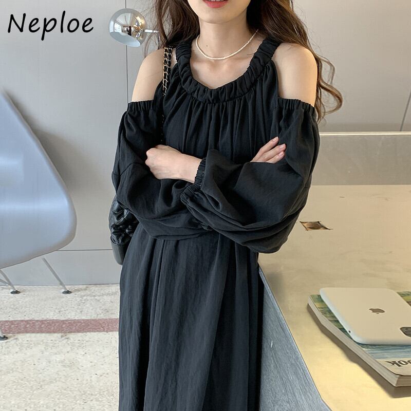 ランタンスリーブ オータム 秋物 ドレス Oネック オフショルダー JPLS82004552181