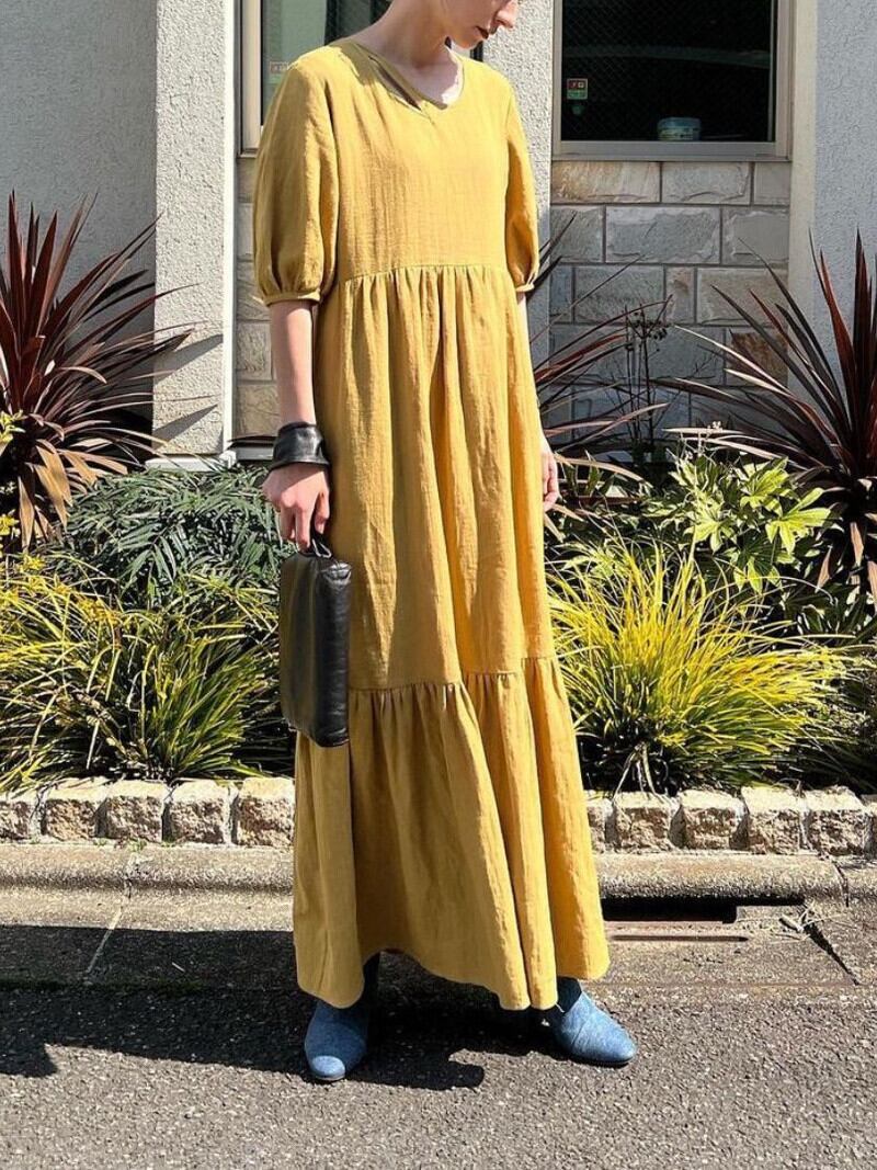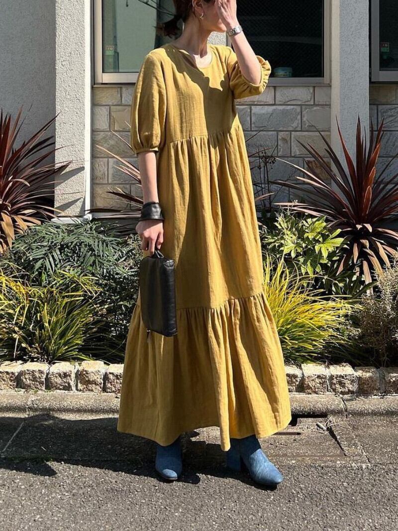 ショート ロング 半袖 ハーフスリーブ サマー 夏物 ドレス Oネック JPLS96039859922