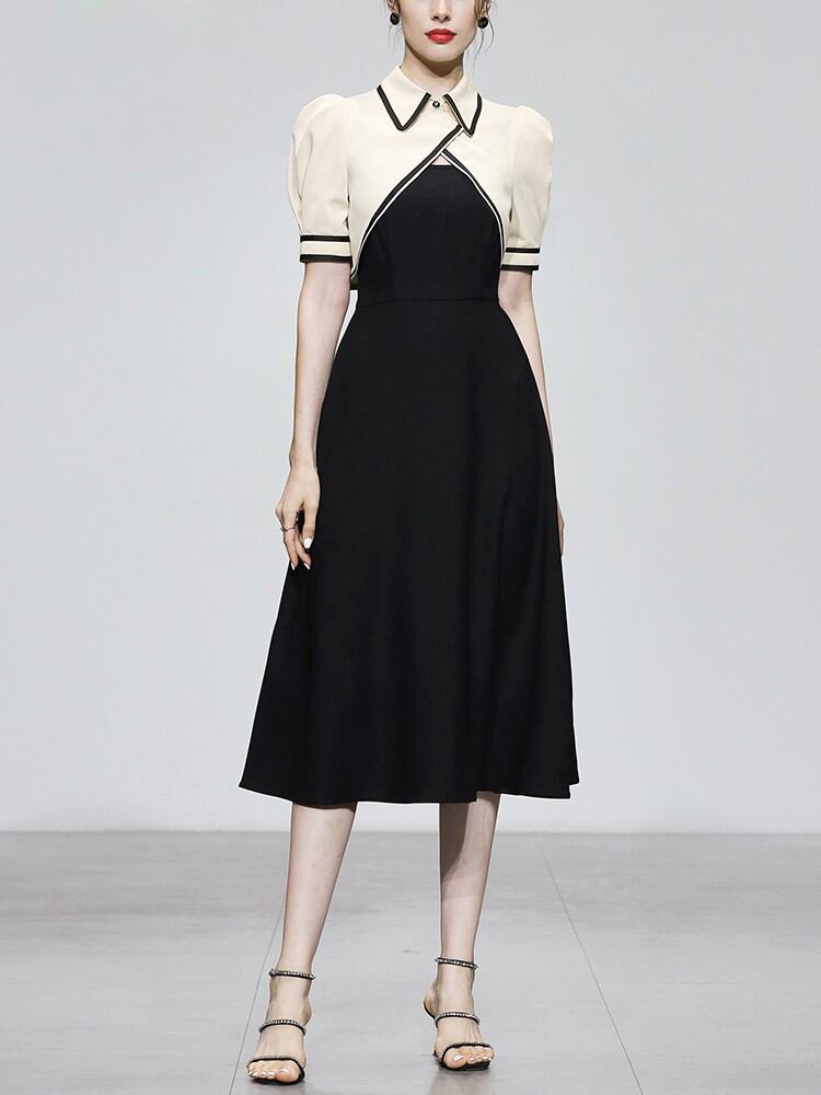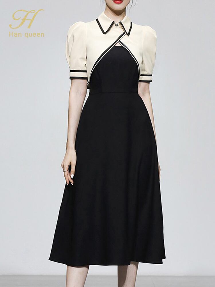 レトロ サマー 夏物 ドレス Aライン スリム 会社 学校 通勤や通学にも A-HHan35729076267