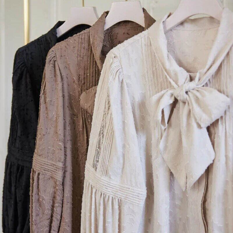ランタンスリーブ リボン レース ブラウス プリーツ オータム 秋物 ウィンター 冬物 レースアップ JPLS51107380812