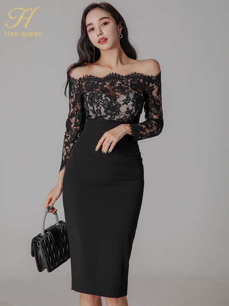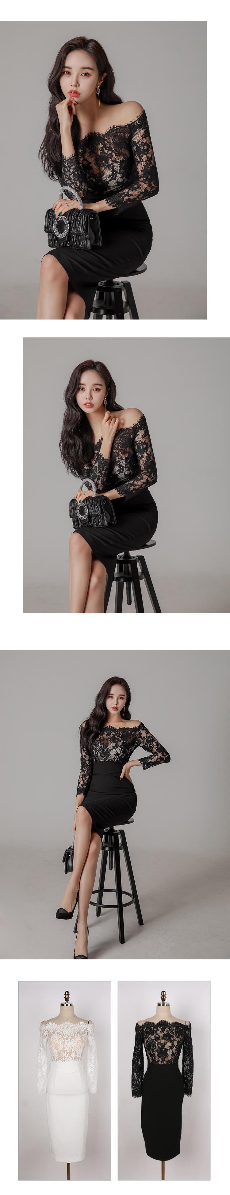 ホワイト ブラック レース ドレス A-HHan82209416017