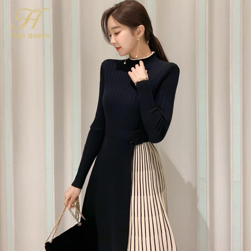 レース エラスティック 伸縮 ウィンター 冬物 ドレス スリム レースアップ 会社 学校 通勤や通学にも A-HHan91871611902