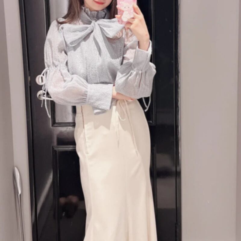 ロング リボン レース 長袖 シャツ ブラウス 刺繍 かわいい スプリング 春物 JPLS40118713700